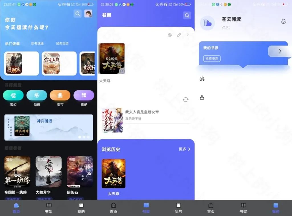 苍云阅读是安卓端免费小说阅读神器,聚合海量书源,涵盖玄幻、言情等全题材内容,热门连载实时更新不缺席。界面纯净无广告,安装包小巧、内存占用低,老机型也能流畅运行。支持离线缓存、书架分类管理与多设备云同步,阅读进度无缝衔接。