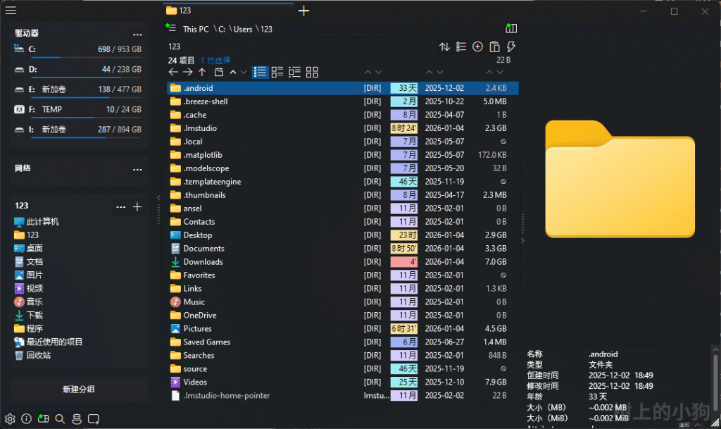 One Commander 是 Windows 端高颜值高级文件管理器,主打多面板布局与自定义界面,支持标签页、快捷访问栏与智能筛选功能。兼容批量重命名、文件比对、压缩解压等实用操作,可自定义快捷键与主题皮肤。支持云存储挂载、网络共享访问,占用资源低,操作流畅。