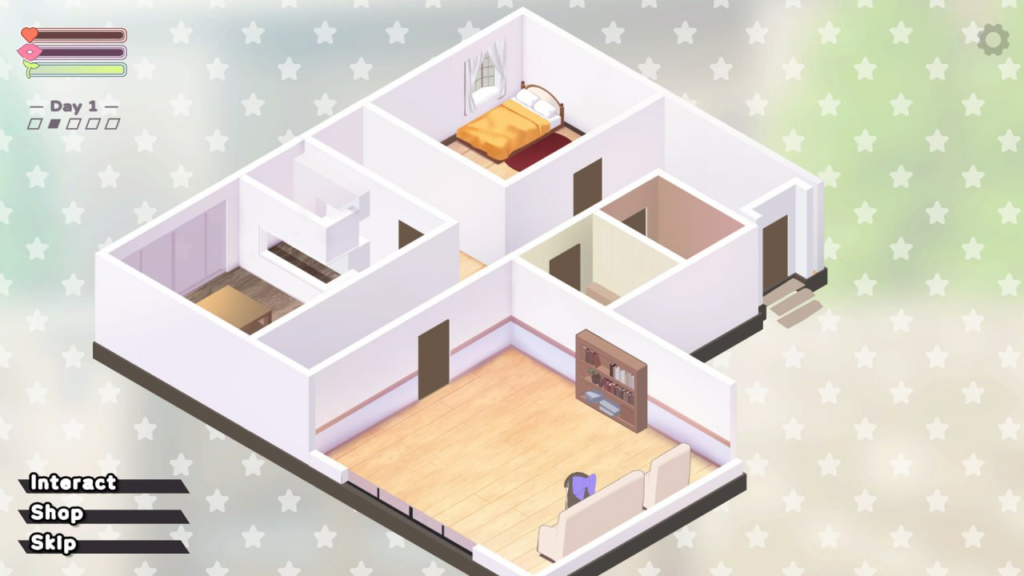 时间段分早中晚,不同的时间和房间去找妹妹会触发不同的对话或互动,随着好感度增加也会解锁更多对话、互动,