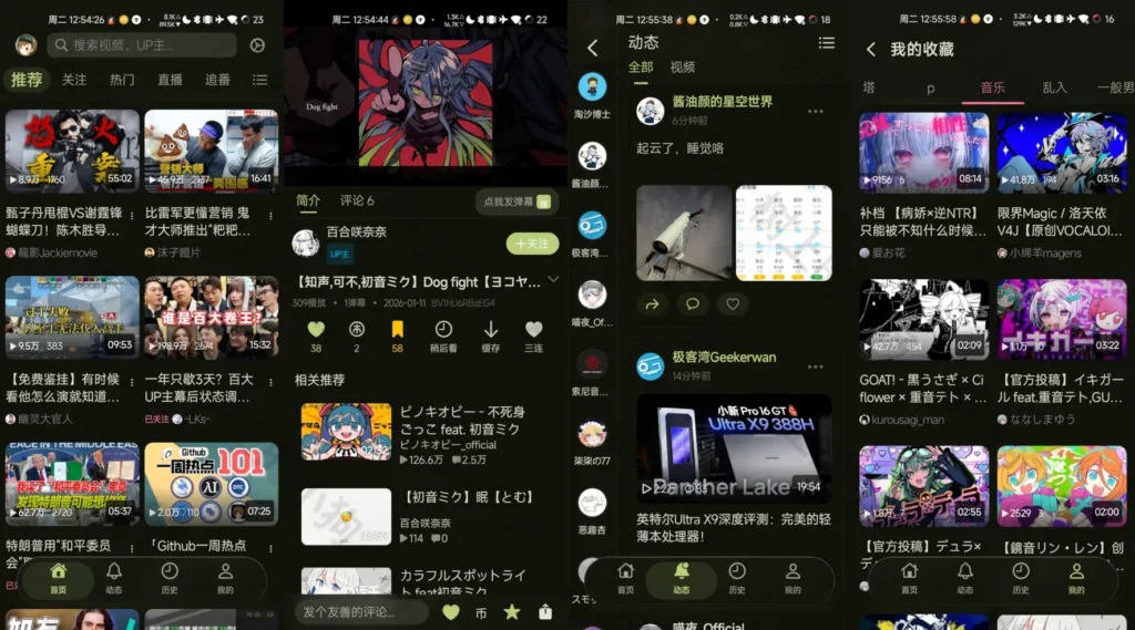 BiliPai 是开源免费第三方 B 站客户端。纯净无广,支持扫码 / 网页登录同步 B 站账号,解锁 1080P60/4K/HDR/Dolby Vision(需大会员),DASH 自适应码率,弹幕可调。内置插件中心,含空降助手(跳过恰饭 / 广告)、去广告、弹幕增强,支持离线缓存、动态浏览、直播 / 番剧播放,Material You 动态配色 + 深色模式。