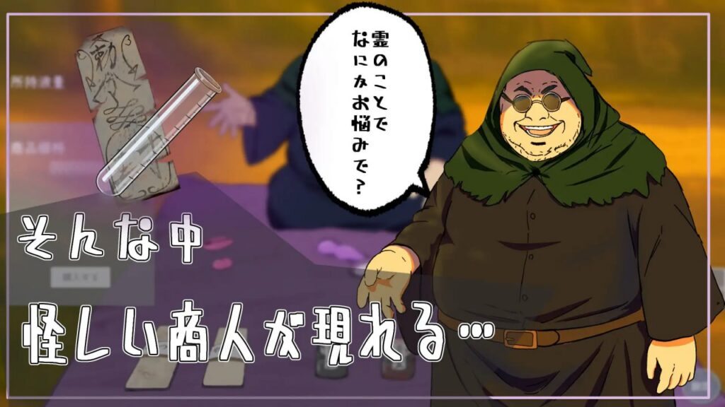 在无计可施的归途上,一个可疑的商人向他搭话。看来是个专门处理灵体的妖怪道具店。
