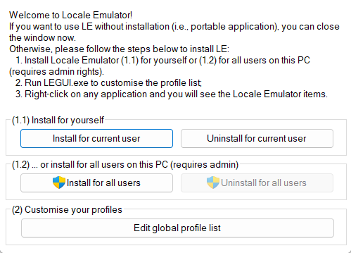 首先要有一个转区工具,这里以Locale.Emulator为例