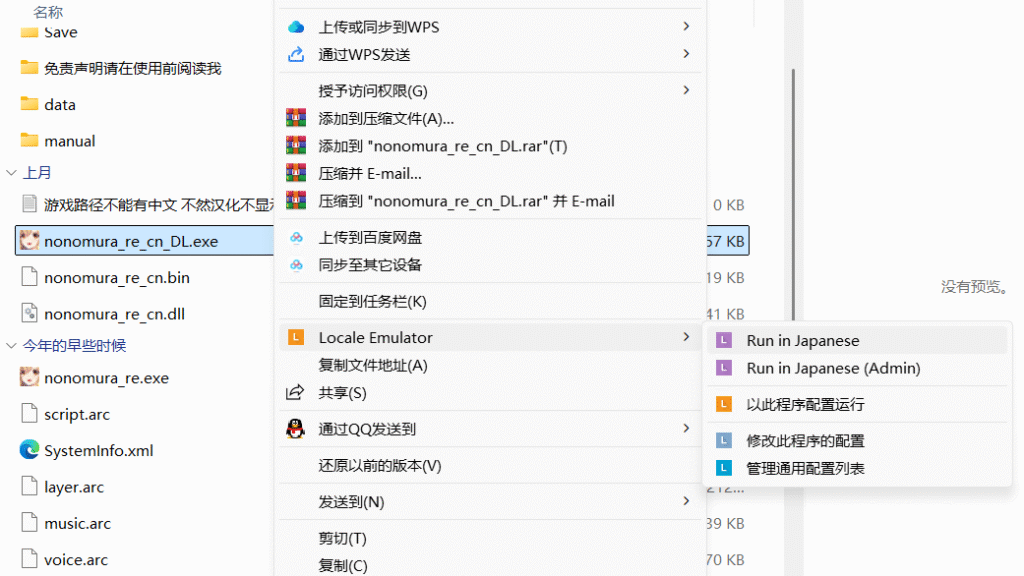 以防有些人遇到解压问题和游玩部分galgame发现打开都是乱码,遂出一期适用于大部分情况下的解压和转区的过程