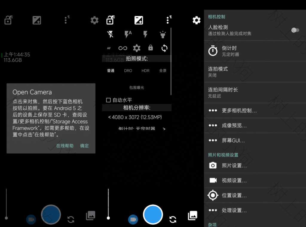 Open Camera 是一款开源免费的安卓相机应用,支持 Android 4.0.3 及以上版本。