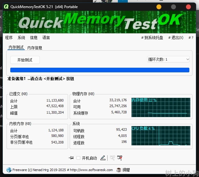 QuickMemoryTestOK 是一款轻量开源的内存检测工具,支持 Windows 全系统,无需安装即可运行。